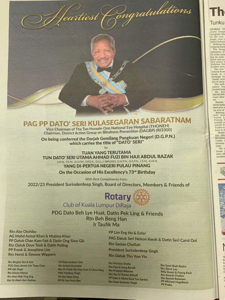 Penang Governor’s Birthday (2022) Honours To School Alumni